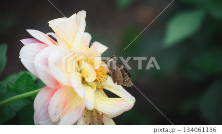 ダリアの蜜を吸うセセリチョウ