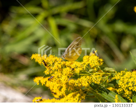 生き物 昆虫 タイワンシロチョウ、三月の石垣島で。林縁の草むらの花を飛び回って吸蜜