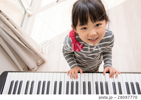 アップライトピアノを弾く日本人の女の子