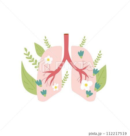 Lung with flowers isolated on white background. Vector flat illustration. Stop smoking