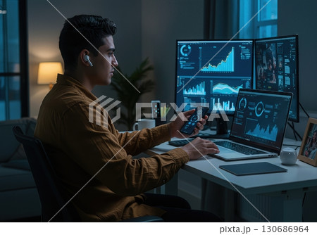 Young Professional Seamlessly Integrating AI and Smart Home Technology into Daily Work Life
