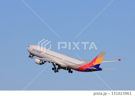 成田空港を離陸するアシアナ航空機 海外旅行 韓国旅行 インバウンド