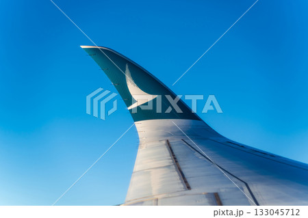 青空を背景にしたキャセイパシフィック航空エアバスA350のウィングレット