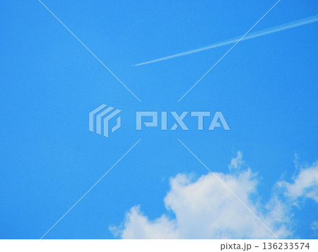 青空と飛行機雲の風景