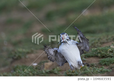 Puffin Portrait. Birds living in Scandinavian countries. Fishing bird. Birds in the wild.