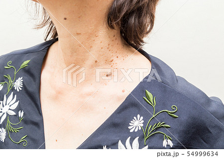 首のイボ 老人性疣 イボ 疣 皮膚 加齢 美容 肌 女性 人物 ボディパーツ