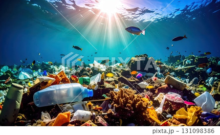 《AI画像》海底に沈んだ沢山のプラスチックゴミ