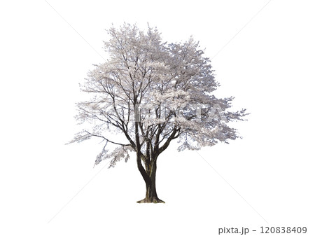 建築パースや立面図で使える樹木の添景_大きなサクラの木_白く美しい満開の花びらをまとった一本桜