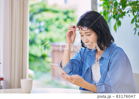 老眼に困るミドル女性【スマホ】