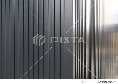 滑らかな金属製の波形屋根瓦の整然とした配置