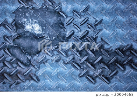 チェッカープレートに雪溶ける