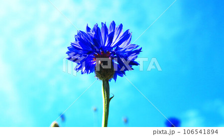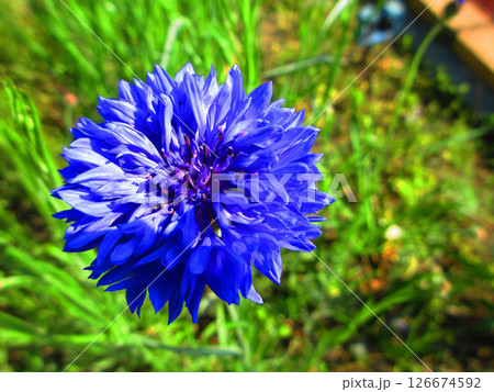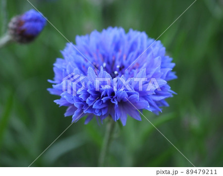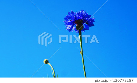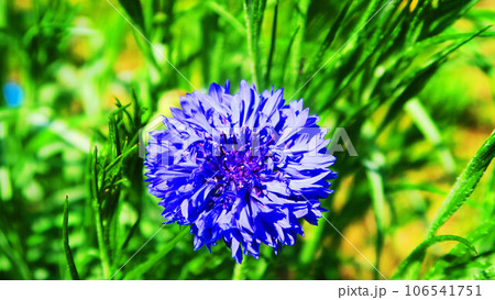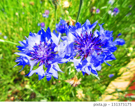 青いヤグルマギクのきれいな花の風景