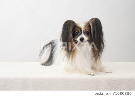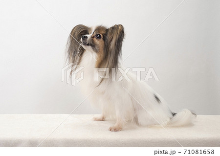 お座りしたパピヨン