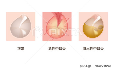 中耳炎の鼓膜のイラスト_正常_急性中耳炎_滲出性中耳炎