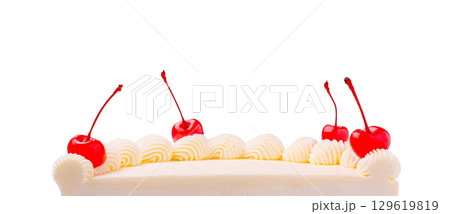 Layered cherry cake with frosting on a white background