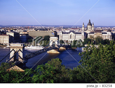 ペスト市街・鎖橋・聖イシュトヴァーン教会(ハンガリー/ブダペスト)