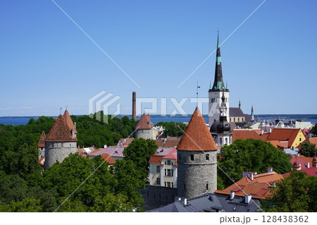 タリン 城壁からムンカデタグネ塔と聖オレフ塔の眺め