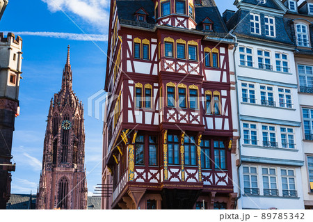 ドイツ フランクフルト・アム・マインのアルトシュタットのレーマー広場の街並みとカイザードーム