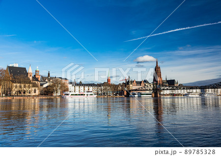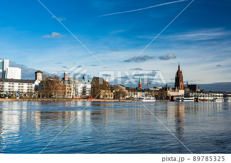 ドイツ フランクフルト・アム・マインのマイン川と遠くに見える聖バルトロメウス大聖堂