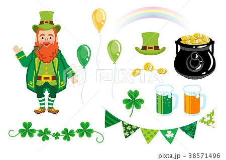 聖パトリックデーのイラストセット シャムロック クローバー ビール