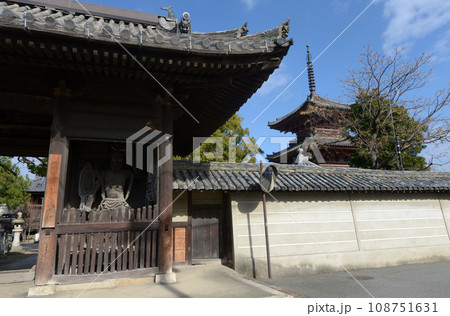 斑鳩寺 仁王門と三重塔 兵庫県揖保郡太子町鵤