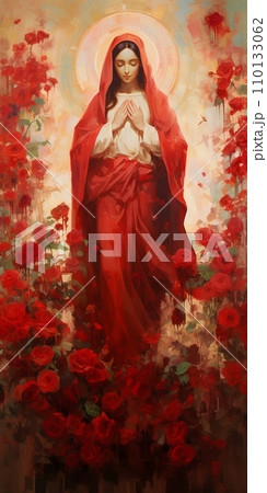 赤いバラに囲まれたグアダルーペの聖母 generative ai
