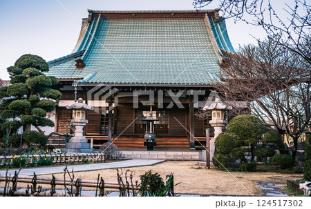 Main Hall with Copper Tiled Roof on Historical Buddhist Temple Grounds