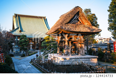 Bell Tower with Thatched Roof on Historical Temple Grounds