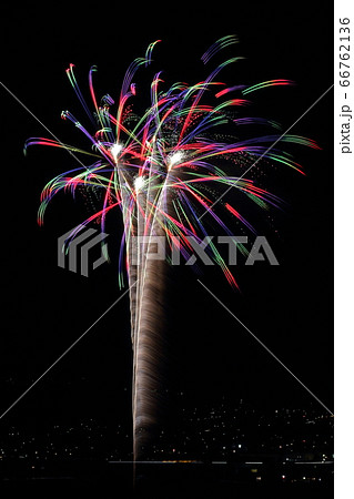 夏空に舞うパステル花火(神明の花火大会 山梨県市 川三郷町)