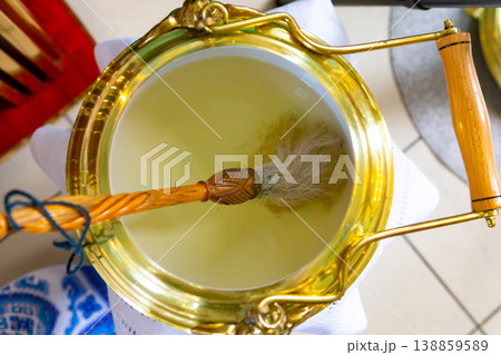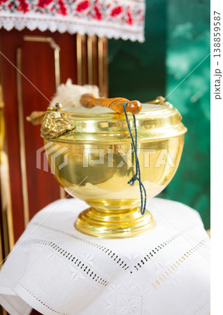 church attributes. various accessories for the holy ritual. gold bowl