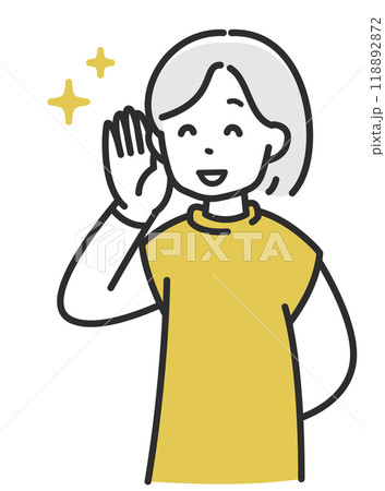 耳がよく聞こえて嬉しそうな中年女性のイラスト
