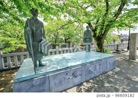 岐阜県大垣市 奥の細道結びの地 舟町川湊跡の松尾芭蕉と曾良の銅像