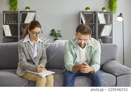 Professional private psychiatry, counseling session, therapist, serious discussion and introspection