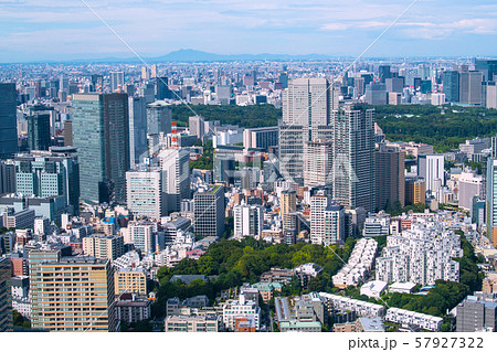 日本の東京都市景観 六本木や大手町などの街並みを望む