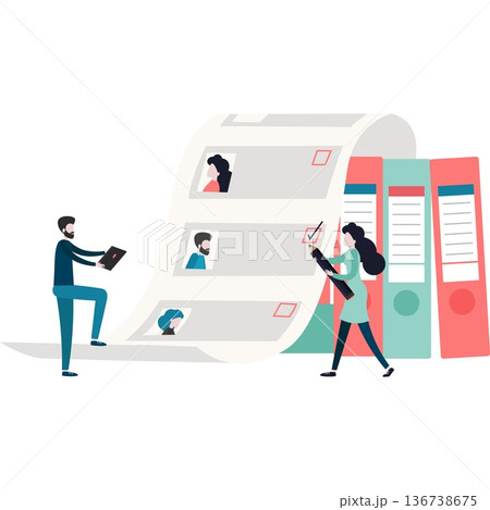 Human resources manager competency. Personnel management specialist. HR manager maintaining employee wellbeing and performance. Team work regulation. Flat vector illustration
