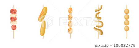 Delicious fresh, juicy chicken or pork kebab on skewers with salt and spices