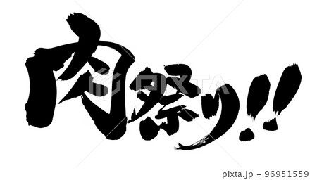 筆文字素材の手書きの【肉祭り!!】墨で書いたイラスト文字