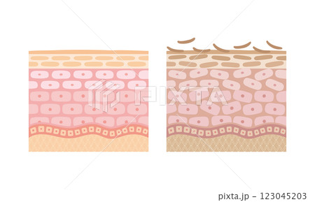 乾燥肌とバリア機能の整った健康な皮膚 肌細胞と断面図 立体