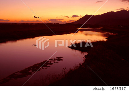 肝属川の朝焼けの風景