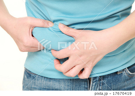 贅肉をつまむ女性