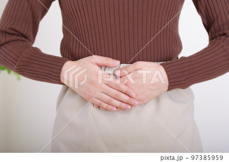 下腹部に手をあてる若い女性