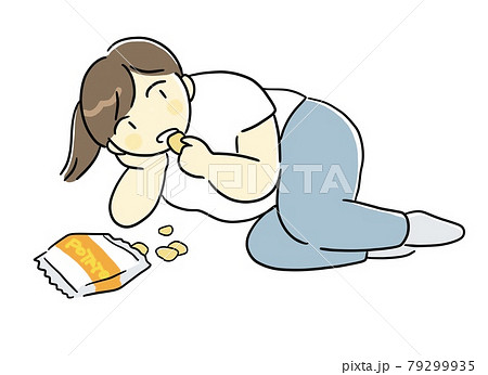 寝転びながらお菓子を食べる女性