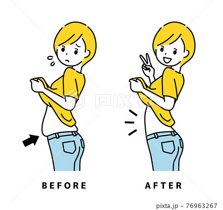 お腹周り、腰回り、お尻回り、足の肉をシェイプしたビフォーアフターのイラスト