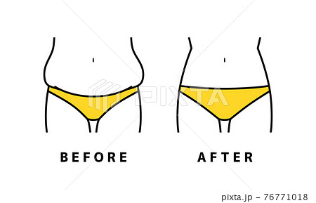 お腹周り、腰回り、足の肉をシェイプしたビフォーアフターのイラスト