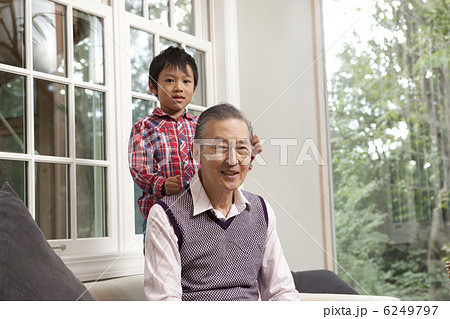 肩たたきをする祖母と孫 孫 祖母 おばあちゃんと孫 祖母と孫 肩たたき 肩もみ マッサージ
