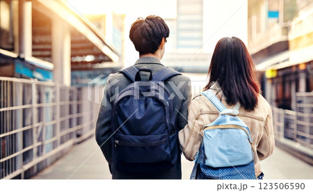 通路を歩く若いカップルの後姿,generative ai_ワイド