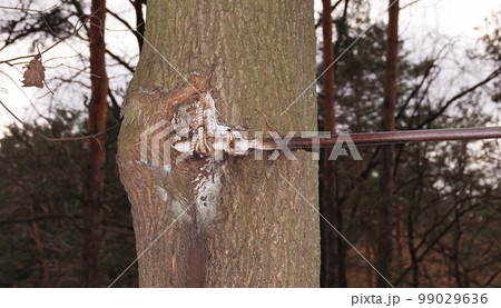 The tree has swallowed up the iron crossbar (horizontal bar), which was for a long time to him