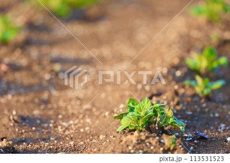 Agricultural field of sugar beet seedlings. Sugar beet sprouts grow in rows in a field. Cultivation of sugar beet plants