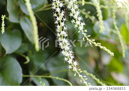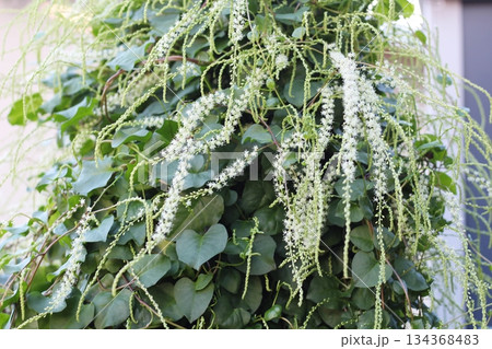 オカワカメの花 白い花 アカザカズラ 長い花穂 白く小さ花が集まり穂のように咲くオカワカメの花
