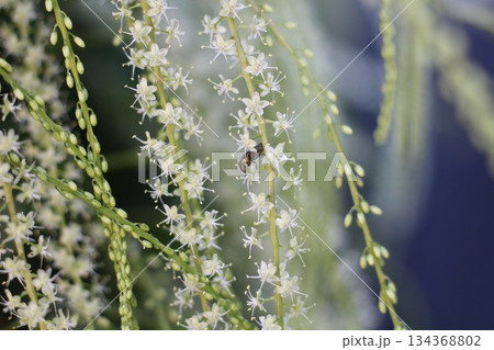 オカワカメの花 白い花に虫が一匹蜜を吸いにきている アカザカズラ 長い花穂